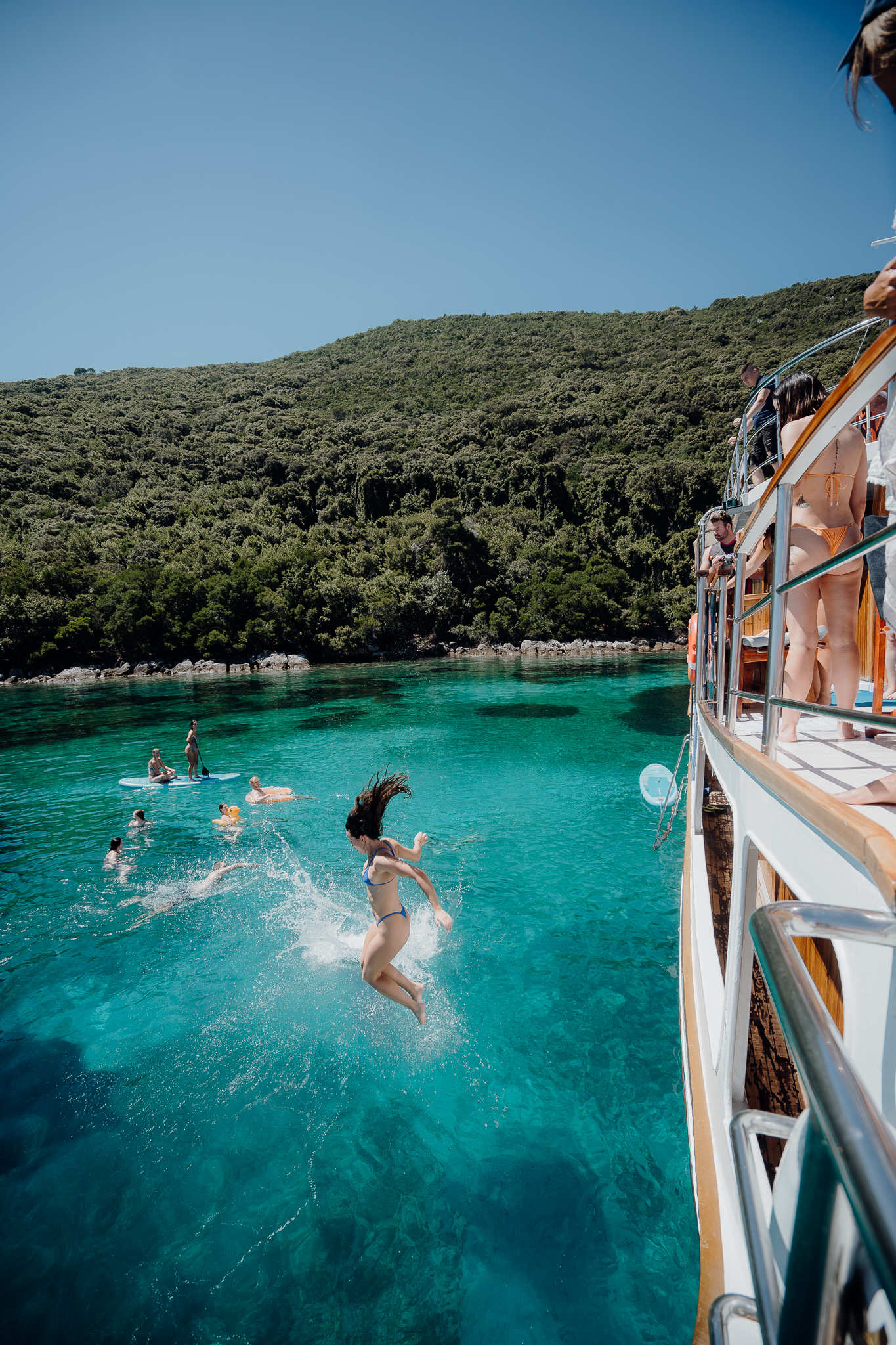 After check-in, we'll set sail down the coast and enjoy our first onboard lunch, taking in the stunning scenery along the way. We'll stop for a swim at a secluded coastal bay where you'll be able to dive straight into the crystal blue water from the back of the ship!