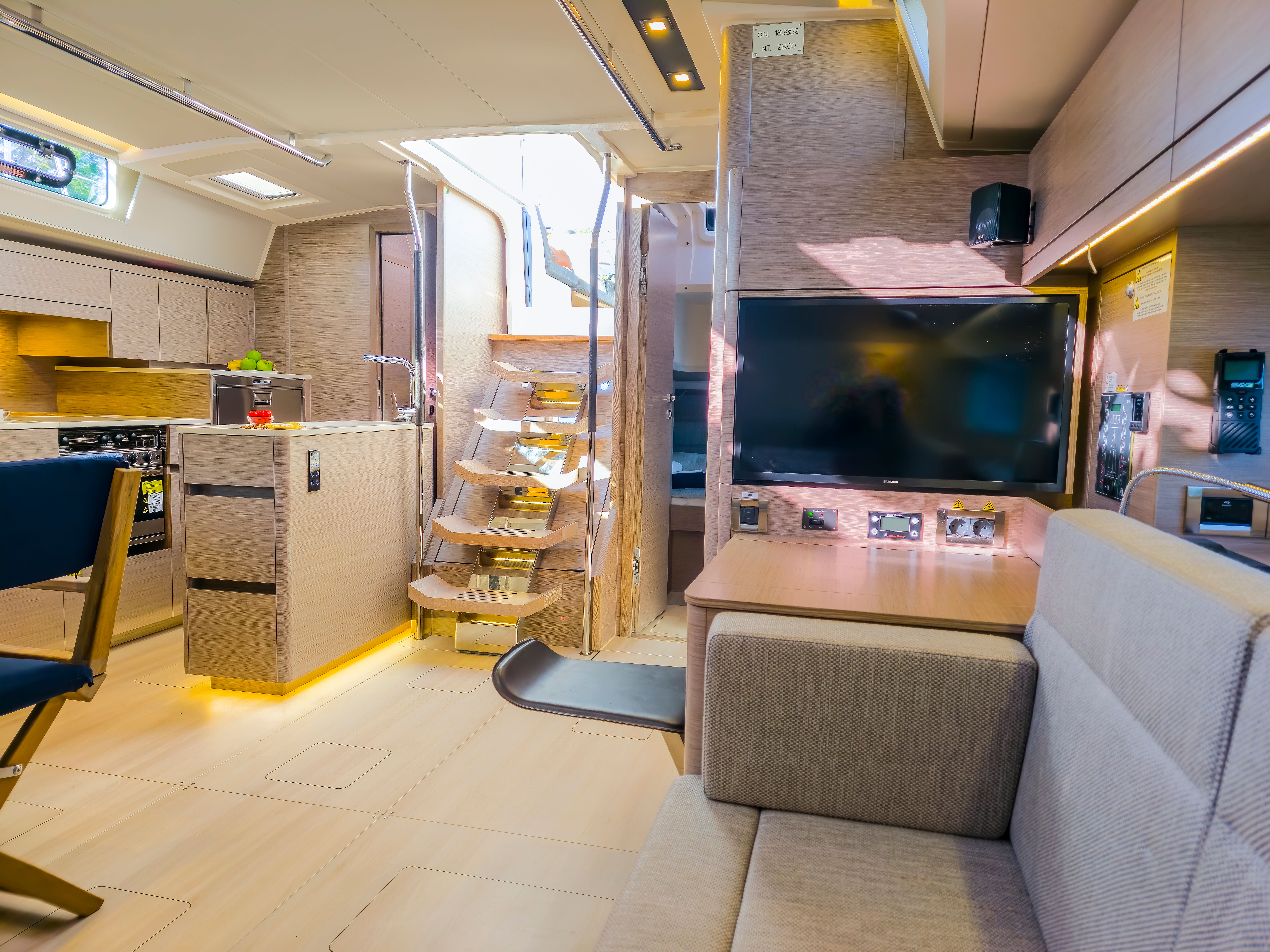 The addition of a grill barbecue, fridge and sink is perfect for adding to the dining alfresco experience. The twin cockpit tables provide a fantastic dining space and can be electrically lowered, transforming the cockpit into a large sun pad, perfect for lying back and lounging in pure comfort with the outdoor speakers creating the perfect vibe onboard.