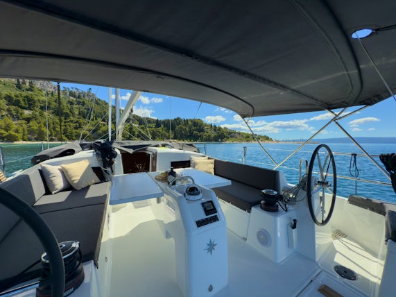 The Jeanneau Sun Odyssey 490 sailing yacht offers a generous cockpit area, ideal for relaxing while sailing or at anchor.
