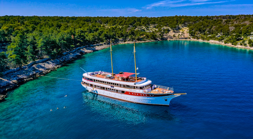 This evening, enjoy the Taste of the Adriatic dinner, where the onboard chef will showcase the best of Dalmatian cuisine. The Captain will join the meal, offering a wonderful opportunity to meet and get to know them personally.