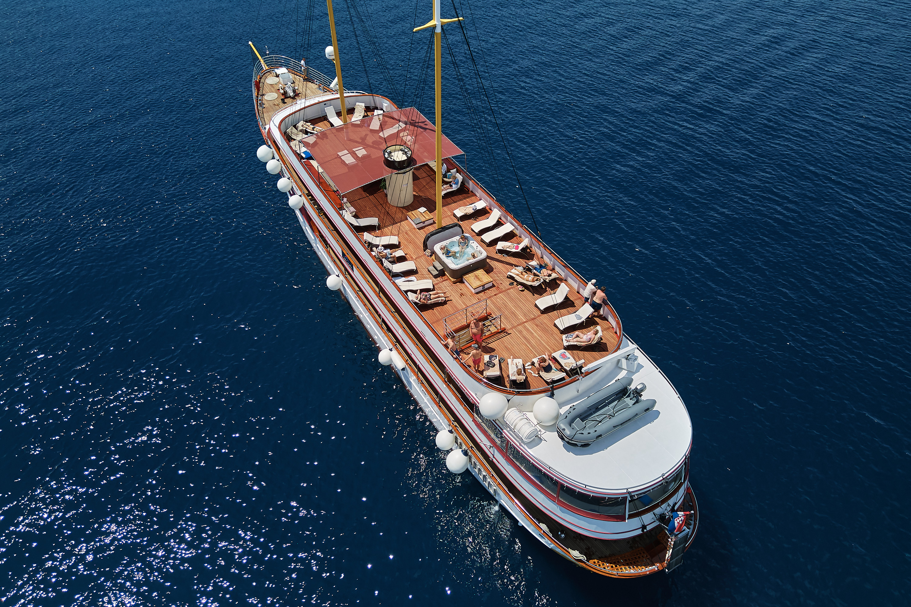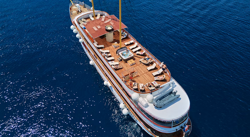 This luxury ship offers a modern take on traditional design, providing multiple areas to relax and unwind onboard. Ahead of the 2026 season, Queen Jelena will undergo an interior renovation, enhancing the timeless ambience onboard.