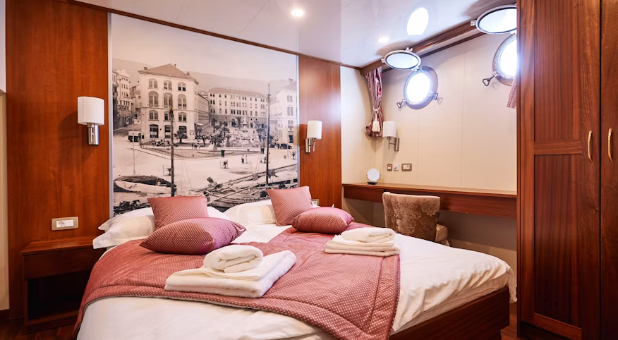 Cruise onboard the elegant MS Queen Jelena, where modern comfort meets timeless style. Swim directly from the ship, unwind in your private air-conditioned cabin and explore a new picturesque town each day.