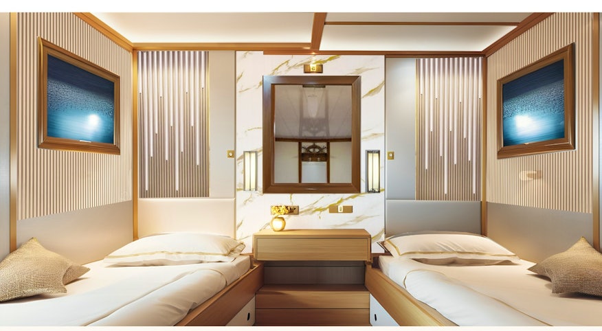 Disclaimer: Renders and descriptions of the 2026 interior refresh for Princeza Diana are for illustrative purposes only. Final finishes, furnishings, and layouts may vary slightly once the upgrade is complete. Sail Croatia reserves the right to make changes without prior notice.