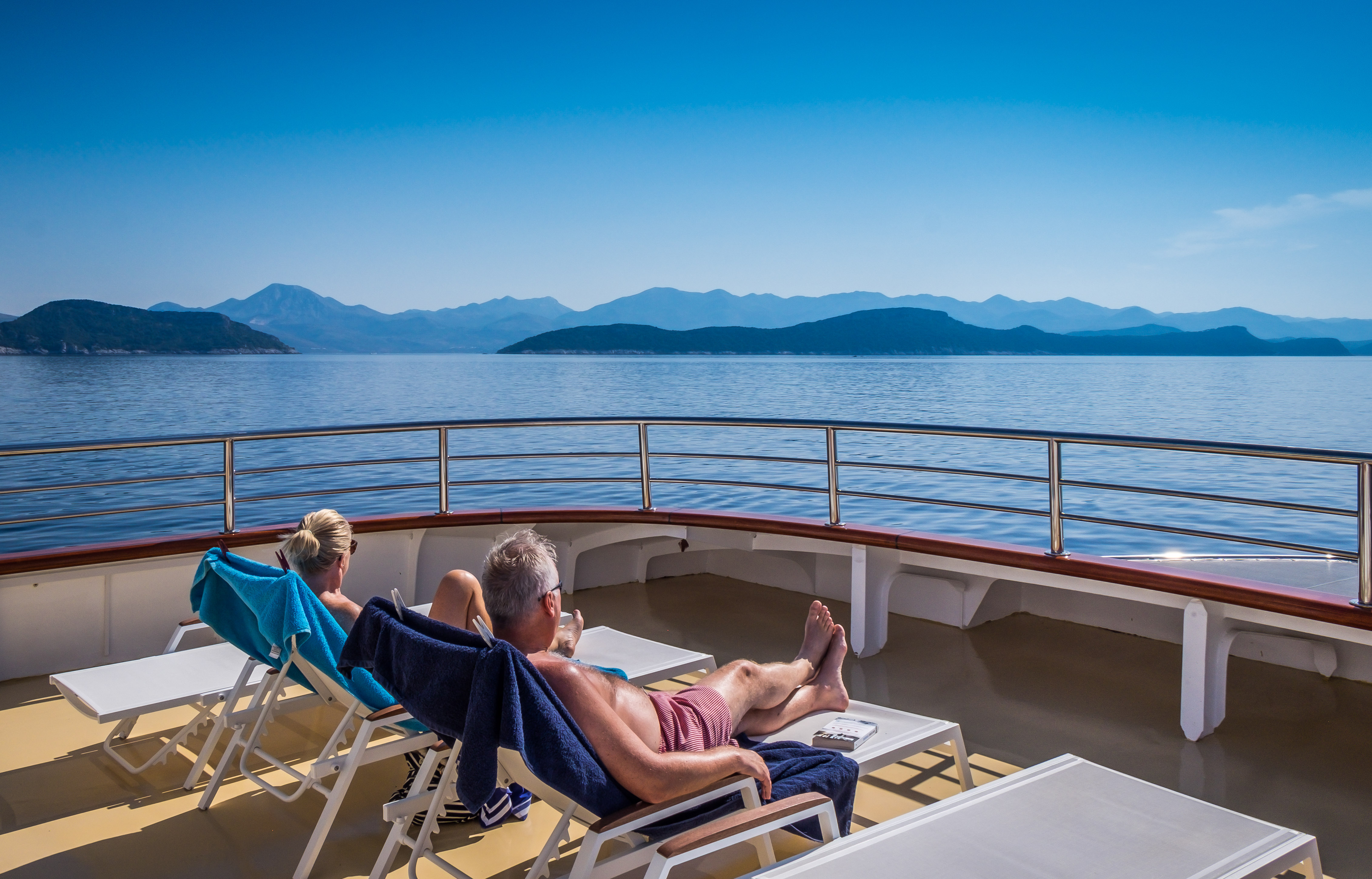 Romantic Star's Top Deck is a calming space designed to maximise the impressive view. A jacuzzi and shaded lounge area are available for socialising and unwinding, whilst plenty of sun loungers are provided in both full sun and shade for guests to sunbathe and relax.